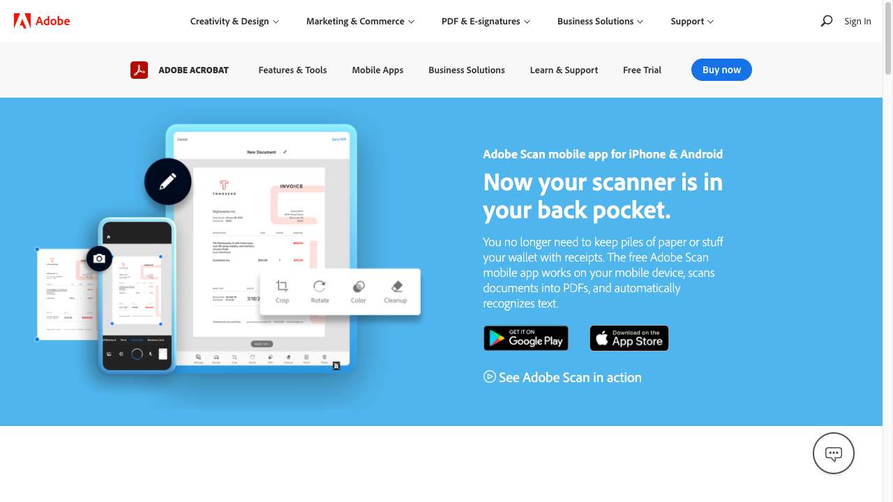 Turn your device into a powerful, portable document scanner, complete with OCR text recognition capabilities, with the free-to-use Adobe Scan app.